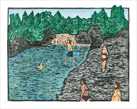 Explore the captivating world of ‘Black Rocks’ by Ben Bohnsack, a unique woodcut design that showcases intriguing textures and captivating contrasts. This piece beautifully captures the thrill of diving off the rocks into the majestic waters of Lake Superior. A must-have for art enthusiasts seeking a blend of creativity and nature.