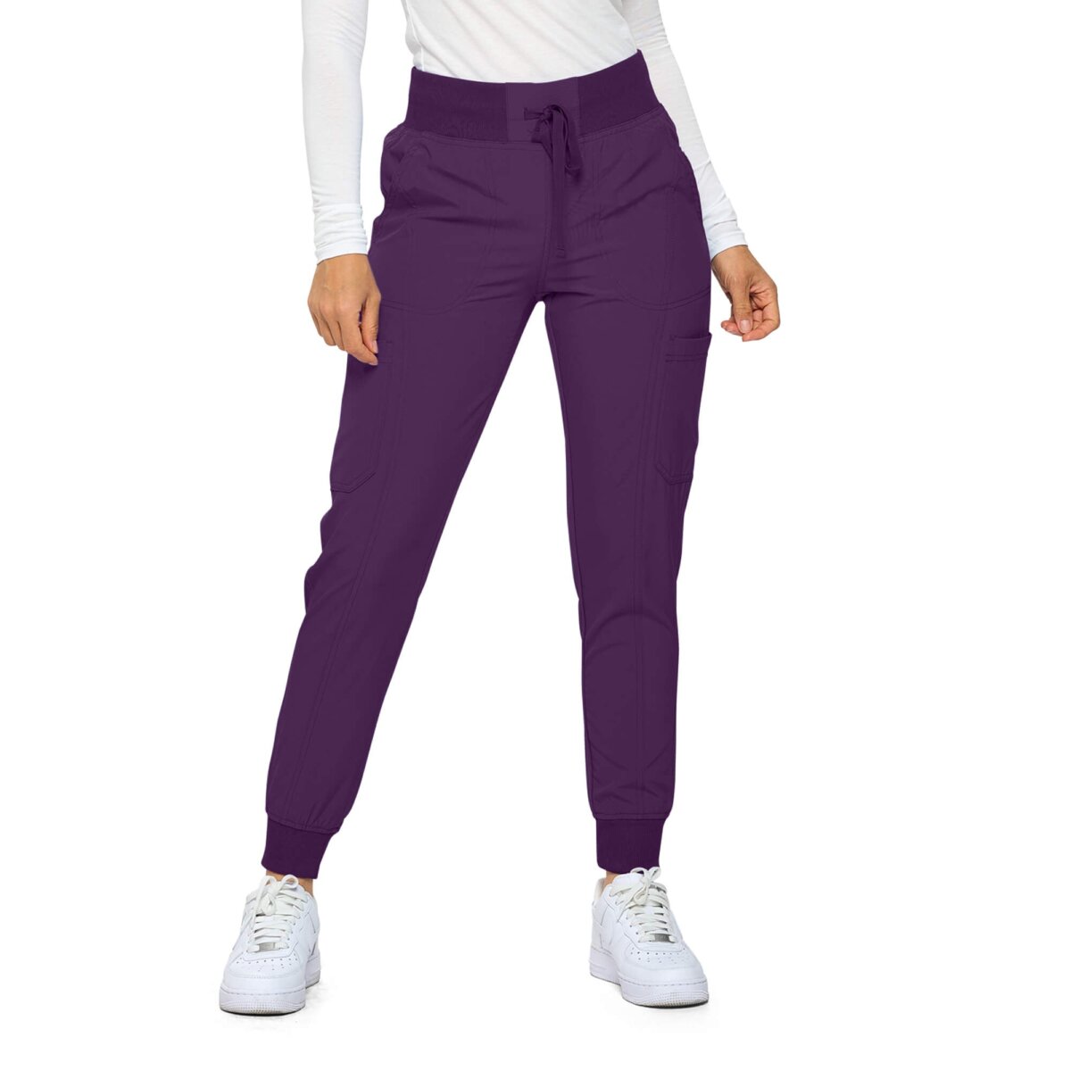 Professional Style Meets Comfort: These contemporary jogger-style medical pants feature a soft-ribbed elastic waistband and tailored seamed legs that provide a flattering, modern silhouette while maintaining professional appearance standards.