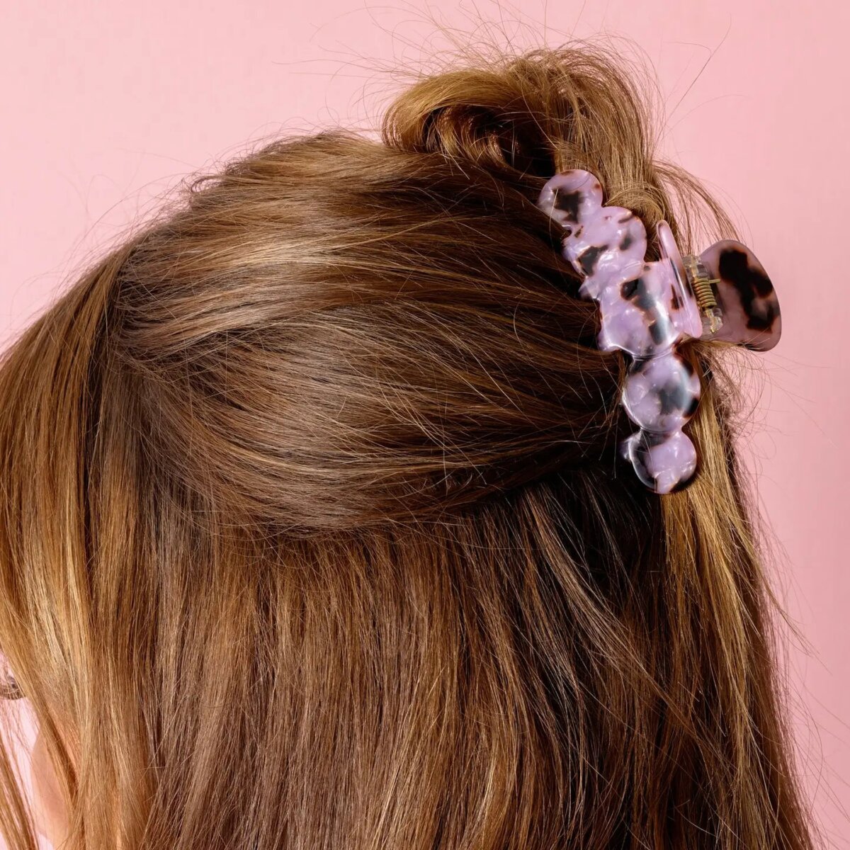 Finish off your outfit with a pink tortoise clip. The perfect size for a half-up style!